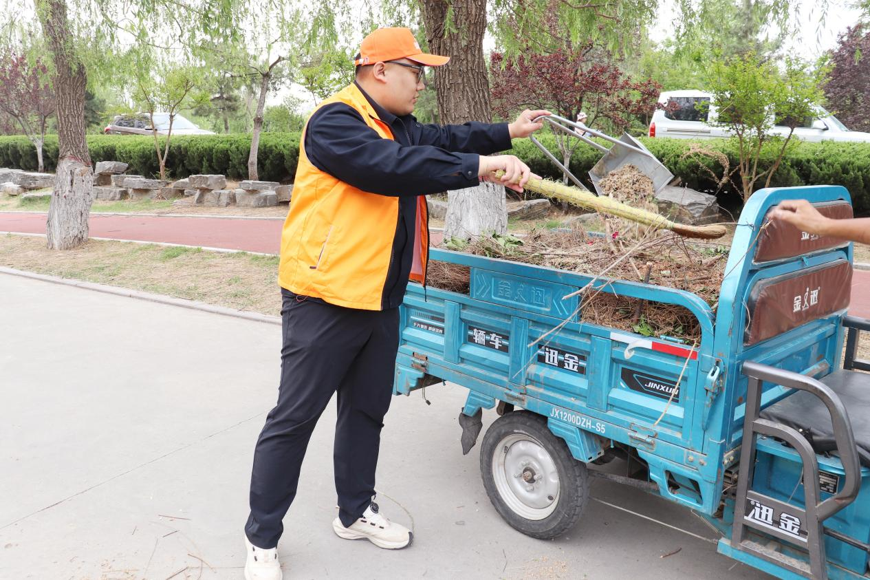 活动当日,党员、团员青年们满怀热忱地在黄河边集结。大家迅速分组,领取手套、垃圾袋等工具后,便有序地沿着蜿蜒的黄河堤坝散开,正式开启垃圾清理工作。他们有的俯身穿梭在河畔草坪间,将藏匿其中的塑料瓶、零食包装袋一一捡出;有的手持扫帚,将路上散落的树枝一一扫拢。每个人的眼神中都透着坚定与专注,手中的动作一刻不停,默契协作的场景成为黄河岸边一道温暖而动人的风景线。