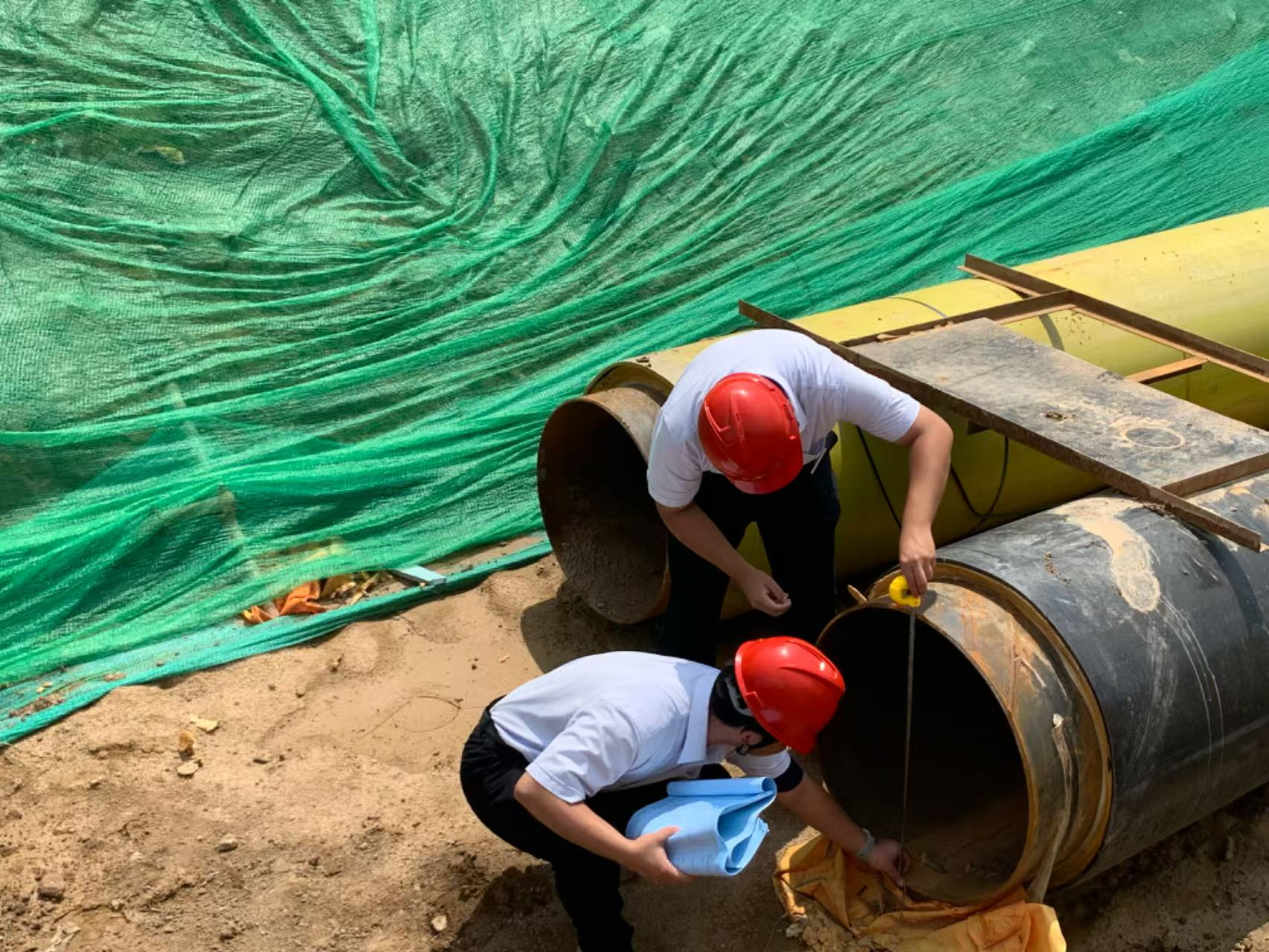 “3.7克”凝聚着“矢志不渝践初心”的忠诚,闪耀“为信仰而奋斗”的使命担当。济南遥墙机场二期改扩建工程作为山东省重点项目,其配套的机场内部一次管网工程肩负着为200多万平方米配套设施供热的关键使命。面对DN700管径400米管线需在3天内完成铺设的紧急任务,周浩宸牵头协调多方力量,与工程管理部全体成员迅速进入战斗状态,日夜坚守施工现场。